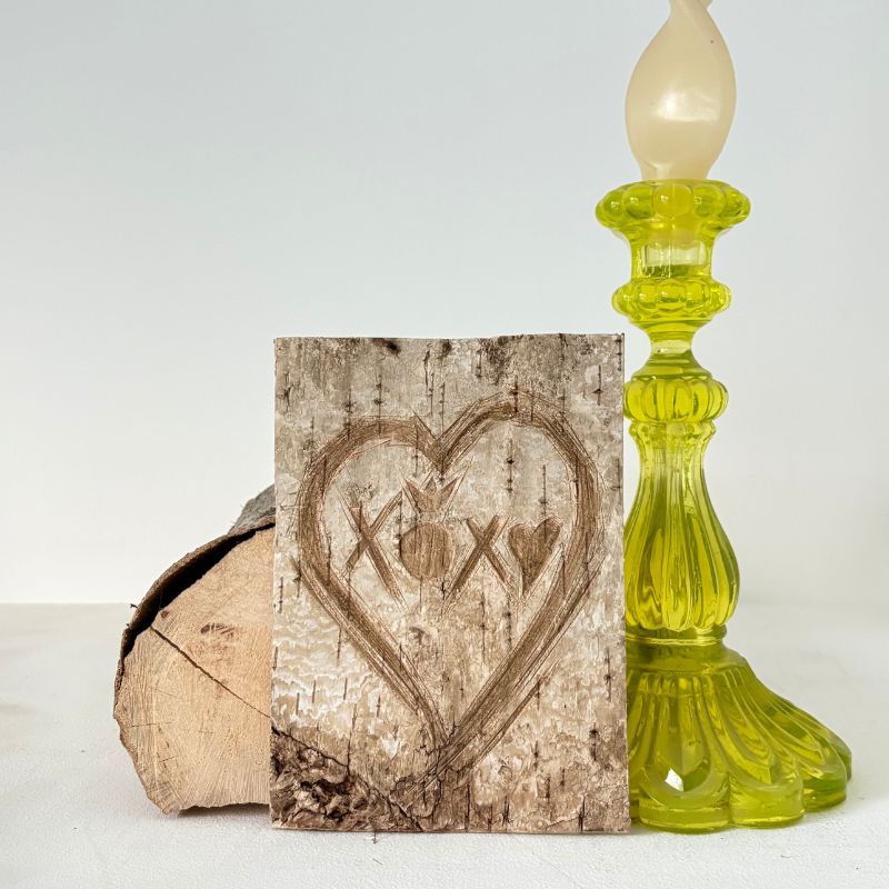 "XOXO" Small Light Birch Bark Plaque Engraved